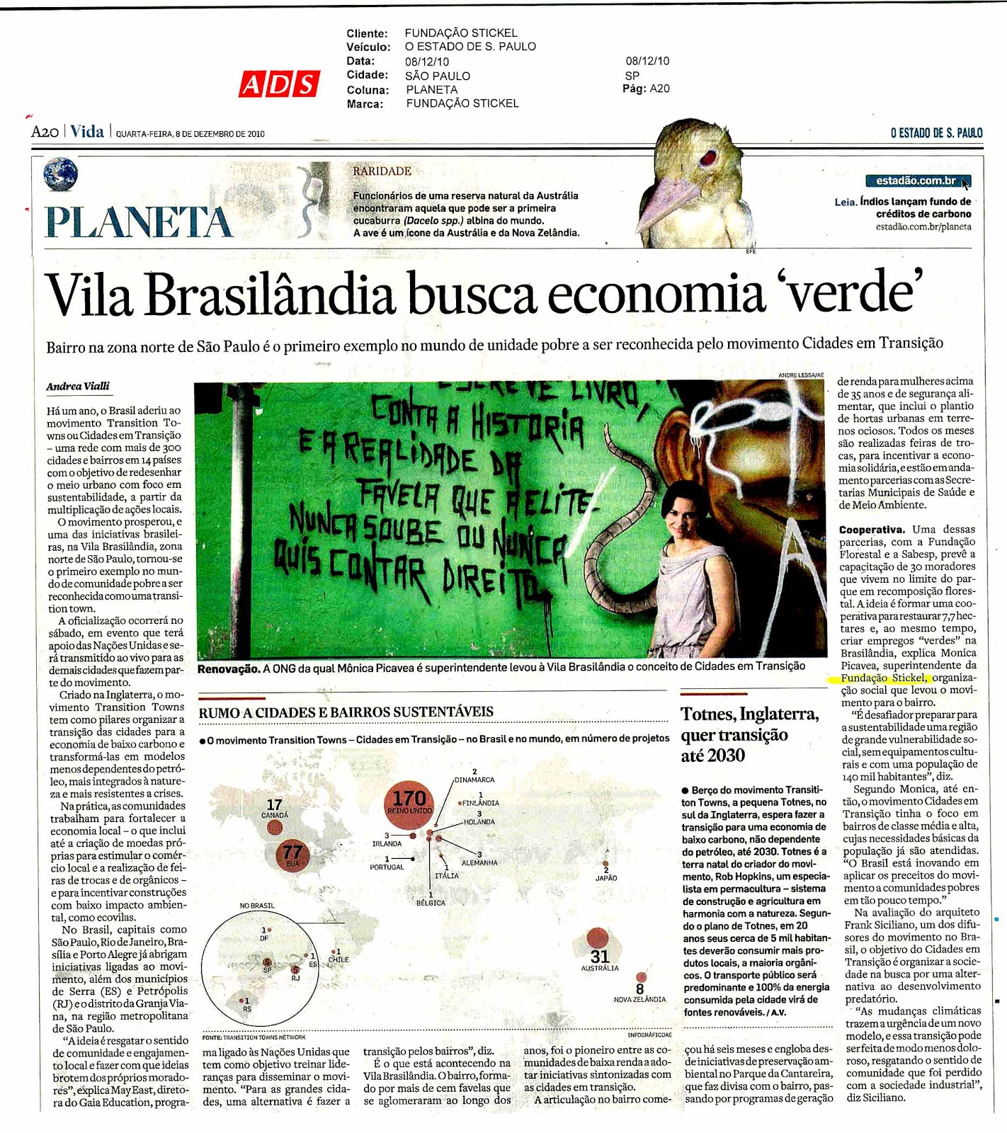 No sábado dia 11 de dezembro a Brasilandia passou a figurar no rol dos bairros em transição, siginificando o primeoro bairro de baixíssima renda do mundo. O evento contou com a presença de May East, Frank Siciliano, Marcelo Todescan, Rubens Moraes da Prefeitura de São Paulo, Vereador Claudinho da Freguesia Brasilandia, Fernando Stickel presidente da Fundação Stickel,lideranças locais, representantes das Unidades Básicas de Saúde, Edson Vieira de Souza,daUBS Terezinha, Andreia da UBS Silmaria, Beth da UBS Guarani, e Ivania da UBS Vista Alegre.